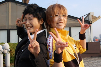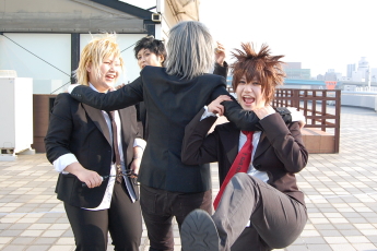 久々の楽装はそりゃもう楽しすぎました^^* 前半のナルト合わせではまさかの大人数で着替えたばっかだったのに何という大人数での集合写真(笑) え、これ偶然ですが何か^^ちょっwwwww あ、私左から2番目の明らかに死にそうな顔してる奴ね(爆笑) 私ハヤテだから死人だから1番端の目立たない所でいぃって言ったのにダメだって言われてとりあえずキイチカカシの隣に居させてもらってたよ左側にいらっしゃった乙希ガイ先生が時々お色気攻撃してきてどうしようかと思いました(苦笑) ナルトasりゅい イルカ先生asもじゃ カカシ先生asキイチ ガイ先生as水谷乙希 とりあえず前半はガイ先生撮影会だったね(爆笑!!!) りゅい様は前にも何度かお写真撮らせて頂いたことがありますが、ホント素敵な美人さんですvv もじゃは、何か変なのばっかでこの1枚が偶然だとしてもとても素敵な笑顔を撮れた!!^^ カカシ先生はまんま本物でしたイチャパラの中身がナルトで本当に読んでいましたが(笑) 月光ハヤテas闇雲ケイビ ペイン&四代目火影asお名前聞きそびれorz 私の病弱メイクぶりは結構好評でした(何故w) てゆかシャドーも何も入れずにファンデとアイラインで隈書いて眉書いただけなんだけどね(笑) ペインかっこよかったですー!!!!!vvv ポーズとかも決まってて><* 四代目火影・・・・・私四カカが大好きでですね!!!(聞いてない) 本当に素敵な方でした! イズモasよつは アンコas紳 コテツas月 左の写真はお気に入りですvv やはり背景に青空ってナルトでは最高に合うよね!!(´Д`*) よっつんとつっきんのイズコテ大好きだぜエヘエヘvvvvv 紳さんカワユスww そして右のが今回のナルト合わせの本メンバー^^ 紳さんとはまだちゃんと話して三度目ぐらいだったと思うけど、めっさ面白い人でした(笑) ココのぞと隆也頑張ります!^^笑 カ カ サ ク !(゜∀゜*)ノシバシバシバシ!!!!!!!!!!KTKR!!!!! サクラas姫蜂桜子 ハァハァハァハァ私カカサク大好きでこの2人が絡んでるとこ見つけた瞬間キモくカメコに熱入れましたハァハァまじ萌ゆるぅぅぅ!!!!!><* 顔を半分写さずに撮るのが結構好きだったりします^^*カカシ先生のエロさが増すvvvvv笑 そして後半のREBORN! 10年後スーツ合わせで、私は初出しで武ってきましたクッヘェー(('皿';))命知らずな奴め!!; ディーノas龍児 武asケイビ 隼人as杏 綱吉asもじゃ スーツだから何人か集まると結構かっこいぃよね!!!(現状は酷かったが^^) 皆まじめに写真写らなさ過ぎて集合でもまともなの探すの大変やったー(苦笑) ディーノが1番決まってる写真撮れたと思う!!!龍児さんとは初合わせでしたエヘヘvvv もじょ(杏さん)の隼人はやはり本物!(見た目は) 雰囲気とかまんまだよー!!(黙っていれば) もじゃのツナ初めて見たけどめらっさカワユかったハァハァやばかった!!!(セクハラが酷かったがwww) もじょもじゃコンビが一緒になると現場崩壊だでも楽しいからいぃや!!!笑 人様のカメラにもふざけた写真たくさん入ってたら申し訳ないなw ここから立海のターン^^←途中何度かこっちのカメコ頑張ってたw 仁王as雪夜 柳生as壱 この2人大好きなんですハァハァハァ(´Д`*) 2人共本物過ぎたぁぁぁぁぁ!!!!!!!!!! 背景に人写さない用にものっそ頑張ったよ!! ブン太as千葉 綺 真田asキイチ 仁王as最中 幸村as聖 とりあえず綺さんがカワユくてどうしようかとお持ち帰りしたいこの愛らしぃブン太!!!!!vvv 真田なキイっちゃんが様になっててちょっと怖いなとか思ってたけど目線が合う度に投げキッス攻撃をお互いする程の仲のうちらにはそんなの関係ねぇ!!!(何してんだ) 最中さんのピンが凄い変顔のしかなくてリアルにリョンボリンヌでしたちょっまともなのマジでなかったんだけどう"ぉ"ぉ"ぉ"ぃ"!!!笑; 聖さん(この間は博多駅でドーモ!!笑+)の幸村かっこよすでしたでもカワユスでしたハァハァ素敵!!! 撮らせてもらったゲスト様です!!! 山本武as壱 獄寺隼人as高村リーコ クローム・髑髏asLENA 壱さんの山本は本当に本物だと思うよでも本物より弾け過ぎてると思うよそんな壱さんが好きだ!^^+ リーコさんは前のジャンオンで知り合って、武をしていらしたのに今回がまさかのごっきゅんで不意を突かれたわハァハァ素敵過ぎたもっと撮りたかった!!!>< そしてキタこれLENAさんのクローム髑髏!!!!!(LENAさんともこの間のジャンオンでお知り合いに^^*) LENAさんとやっと生で獄受けトークが出来て嬉しかったですやっぱり美しい方でしたハァハァvvv イベ終わる直前に撮った念願のLENAさんとの山獄ぅぅぅ!!!!!!!!!!(しかも10年後×14thアッー!!w) 獄寺隼人asLENA ↑もう名前言ってるけど(笑) LENAさんの獄寺が生で見れて良かったですよぉぉぉホント美人さん!!!美麗!!!!!\(^O^)/ 以下おふざけ祭り( ̄∀ ̄)y゜゜゜ まだまだたくさんあるけどこの辺で止めとくぜ!笑 アフターは振りコミュメンバで行ったぉー^^* ものっそ楽しかったよ楽装ー!><* 新年早々名刺を忘れたことが悔しかったが、楽しかったからいぃさ! お写真撮って下さった方々本当にありがとうございましたー!!! サイト遊びに行かせてもらいますvvv