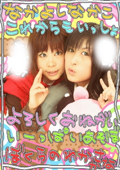 兄さんが寝静まった時にウィーンガタガタと音を出すKYな妹です(起きなかったけどな/笑) 実家帰ったらこれを切って貼って送るんだ(何て地道な作業だ^^) コス用は枚数少ないので楽だーw あ、サイト縮小しました。休止じゃなくて縮小。あんま変わらんけど(苦笑) とりあえず写真ページと予定ページも降ろしましたん。 indexは結構シンプルになりましたー苦手なコスを背景に設置とかブレイブのいることをしてみせたよガタガタ; しかも年賀状に使いまわしにするやつね(ヲィw) 写真・・・マジロケ多すぎて更新追いつかぬぇーよっていうwww(ホント溜まってる・・・orz///) あと桜の園の写真を加工してたりして遊んでたりね!(だって楽しいんだw) 1枚の紙にアルバムみたいな感じでまとめられたらいぃなぁと思って^^* 最近mixiで何故かパンピさんからマイミク申請やらメールやら頂きますが・・・・・もう無視しちゃってます前だったら普通にマイミクなってると思いますが、やっぱ、、、怖いですよね全然オタとも関係ない人なのにっ; そして男と間違えてるのか知らんがギャルからのメルや彼氏欲しい系な感じのプロフな方からも時々来ますイヤイヤ送る相手間違っとるよアナタ(苦笑) 私のプロフをちゃんと読んだられっきとした立派な腐女子なのに馬鹿かコイツラ(・∀・)、ペッ! パンピとのマイミクは学校友達とか顔の知ってる人たちだけじゃぁーぃ!><* もう一般人には戻れないのよ戻る気もないけど(←コミュ入ってるよ) バイト先の人に「●●さんは時々僕をムカつかせることをおっしゃいますよね」と言われたので「私人をムカつかせること得意なんです^^」と言ってやりましたいぃですよねこーゆー会話が出来る人って!(もの凄い毒舌トークw) 「初めて女の方に手をあげそうになりましたよ^^」 「あげてもいぃですよ出来るものなら^^」 とかね(爆笑) 冗談が通じない人との会話って気ぃ遣うからなー; 私の毒舌とやり合える人と付き合いたいね(↑の人は例外で) 余談ですがバイト中に「兄貴」と「お兄ちゃん」が混ざって『あにーちゃん』と言ってしまい皆に爆笑されました(恥orz///) 人前では「兄貴」、家族内では「お兄ちゃん」なので^^; 明日はいろいろします。 ボーリングとカラオケとポムの樹←ネットで検索する程お気に召したらしい兄(笑) あと飲みかな~弁天w 早く化粧落として私も寝なきゃー明日と明後日と明々後日も雪とかマジ最悪なんですけどー(←超冷え性寒いの大っ嫌い;) 冬はカゴンマに帰りたい実家に居たいホットカーペットの上でゴロンゴロンしたい。。。 アネゴと久々に遊んで来ましたよぃ!(*´∀`*)ぱぁぁぁぁぁぁ*:.。..。.:*・゚ パーマってました何というカワユさもだもだそして何か大人っぽくなってたーでもゲーセン行ったらいつものアネゴだった大好きだニコッ!笑 アネゴのSっぷりには惚れ惚れします私Mだから気にしないで寧ろもっと!!!(誤解されるような表現はヤメナサイw) 今日は2人とも被り物ぐるーみーを2種類ずつ取れたという大収穫でしたはふはふ嬉しすー!!!vvv おっちゃん怖かったね~時々居るよねあーゆー人(´・ω・`)むー; お姉さんが優しくてカワユくて優しくて素敵な方だった是非お友達になりたかったわきゃーwww ぐるちゃん達は今こんな感じです。 ロンロンとぷっちゃんに被せてみたよ(^^*)笑 いやーだって場所が・・・ね(苦笑) あそこのゲーセン大好きだーもっと種類も増えればいぃのにな! アネゴ今日は楽しかったよー!ありがとう~~~☆ 今日はイブでしたね!そう、24日でしたね言われなきゃすっかり忘れてましたよ(笑)